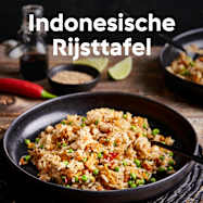 De Indonesische keuken is al generaties lang een vast onderdeel van de Nederlandse eettafel. Deze collectie brengt de vertrouwde gerechten van de rijsttafel samen: geurige nasi goreng, zacht gestoofde rendang, pittige tumis buncis en malse sate ayam. Als verfijnde afsluiting zorgt de pandan crème brûlée voor een frisse, moderne toets bij deze geliefde klassiekers.
